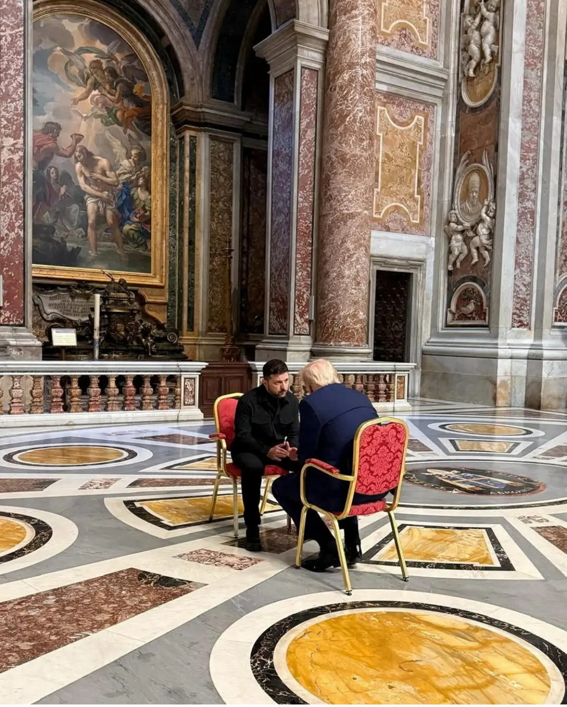 But the image that made me the most conscious of the relevant and eloquent cultural aspect of this film was a picture taken of Donald Trump and Zelensky negotiating inside the St. Peter's basilica: a holy space desecrated, turned into a business room a place for conspiracy.